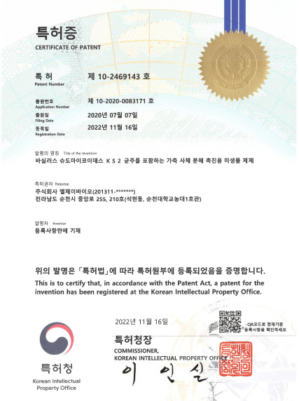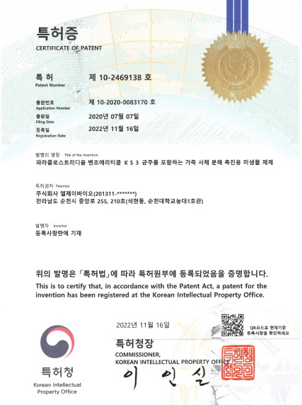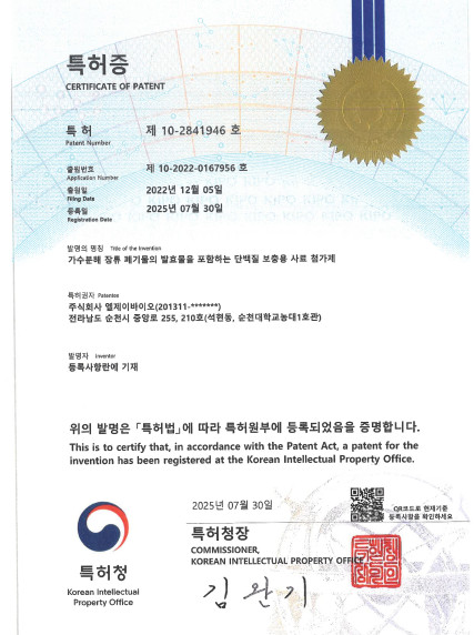 주식회사 엘베이 바이오는 동물용기능성 사료, 부산물활용 사료, 보조사료 및 환경개선제, 농가 컨설팅을